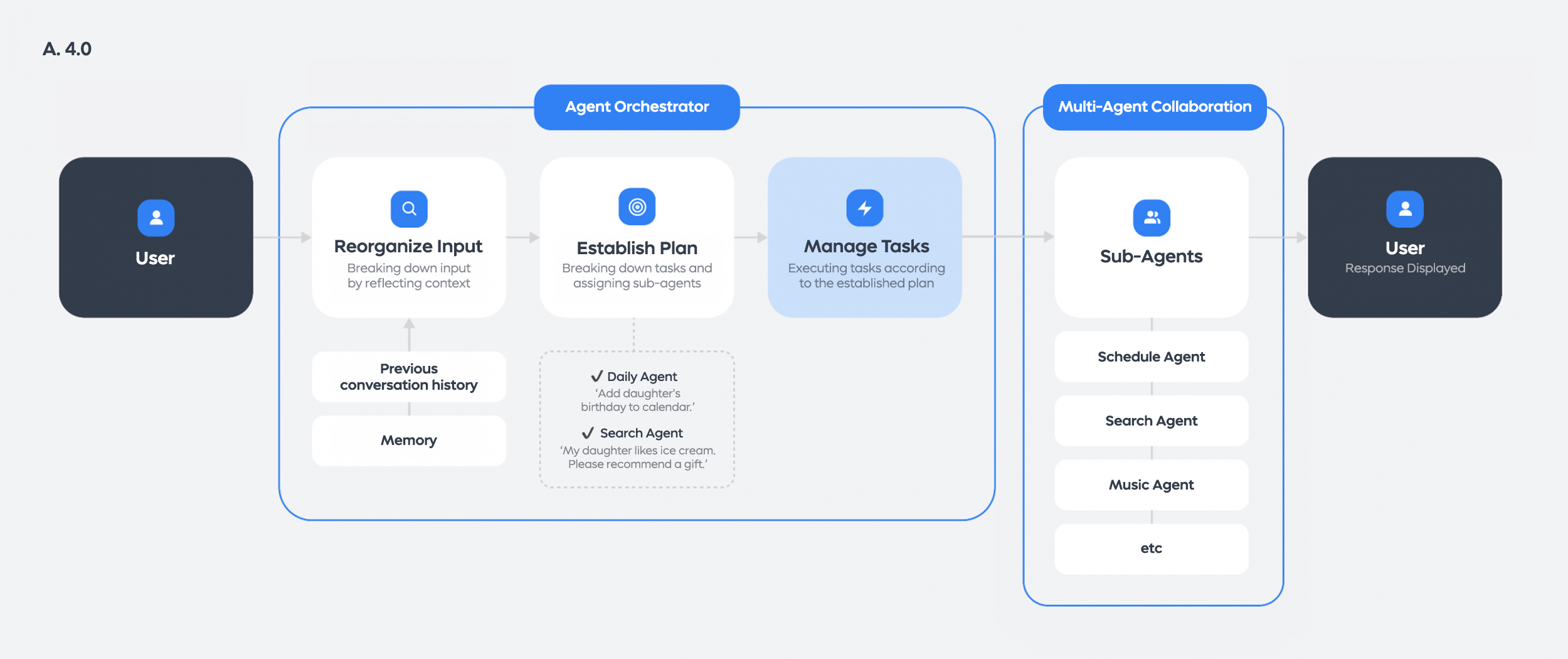 For instance, with a single command like, “Play the music I listen to every morning and tell me today’s weather,” the system identifies the user's music preferences from memory to start playback while providing weather updates based on their current location. The Agentic Workflow is the technical foundation that transforms A. from a mere collection of features into a flexible, living entity.
